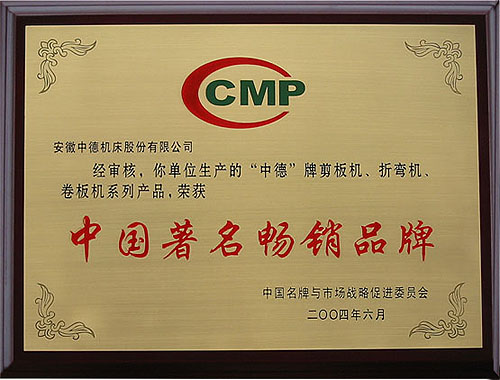 我公司生產的“中德”牌剪板機、折彎機、卷板機等產品由于質量穩定、市場美譽度高在本次活動中一舉當選。(證書編號:2004MP398)