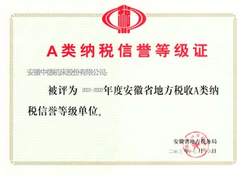 根據(jù)《安徽省地稅系統(tǒng)納稅信譽(yù)等級(jí)管理試行辦法》(皖地稅[200]66號(hào))等有關(guān)規(guī)定,稅務(wù)部門按照納稅人申請、主管地稅機(jī)關(guān)對納稅人2001年、2002年及2003年稅務(wù)登記、納稅申報(bào)、稅款繳納、財(cái)務(wù)管理、納稅資料報(bào)送、發(fā)票管理等方面的嚴(yán)格審核,安徽中德機(jī)床股份有限公司被評為:2001—2002年度安徽省地方稅收A類納稅信譽(yù)等級(jí)單位