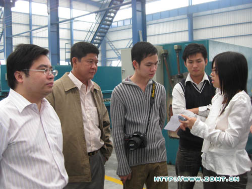 KONG KHEANG先生已經(jīng)跟我們通過(guò)網(wǎng)絡(luò)和電話(huà)聯(lián)系了近一個(gè)月,對(duì)中德機(jī)床表現(xiàn)了強(qiáng)烈的購(gòu)買(mǎi)需求。此次專(zhuān)程拜訪(fǎng)中德,正是為了洽談?dòng)嘘P(guān)雙機(jī)事宜,順便實(shí)地考察。KONG KHEANG先生從事板料加工多年,對(duì)機(jī)器的操作是輕車(chē)熟路,目前自己的工廠(chǎng)里也有幾臺(tái)被撕去標(biāo)牌的中國(guó)機(jī)床。這一次,實(shí)實(shí)在在的看到中德的機(jī)床以后,光光是機(jī)身油漆的光潔,整體的外觀,就使他很激動(dòng),親自體驗(yàn)了一下我們一臺(tái)正在調(diào)試的折彎?rùn)C(jī),然后心滿(mǎn)意足的笑了。