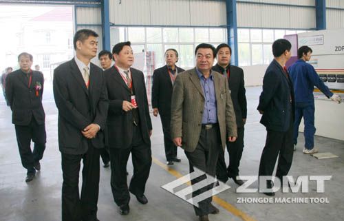 開幕式之后,展會現場當即人頭攢動,場面熱烈。中國機電產品進出口商會副會長王貴清等一行則抓緊時間來到中德機床,對展會企業進行實地考察和深入了解。 博望鎮享有“中國刃模具第一鎮”、“中國剪折機床第一鎮”的盛名,目前擁有刃模具生產企業近500家、機床制造企業近100家,年產值60多億元,是全市經濟持續快速發展的重要增長點。我公司作為本地鍛壓機床企業的代表,熱烈歡迎了王會長和馬鞍山市及其他各位領導的蒞臨。